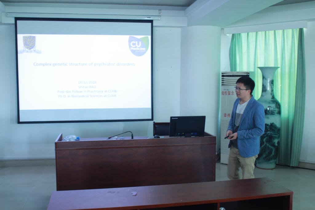 2018年12月18下午,香港中文大学饶世涛博士应邀来我院交流,并为学院师生作题为“精神类疾病的复杂性遗传结构研究”的学术报告。报告会由院长刘光明教授主持,学院教师代表及全体研究生聆听了讲座。