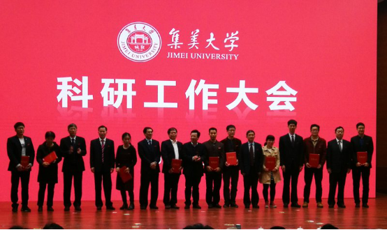 1月7日下午,我校召开科研工作大会,总结过去的科研工作,表彰一批取得优异科研成绩的同志,分析当前科研工作面临的形势,统一思想、明确任务,动员全校教职工在科研工作上作出新的成绩,为我校早日进入“一流大学”作出贡献。会议强调,这是学习贯彻习近平总书记关于科技创新重要论述的一次会议,是深入学习习近平同志在闽工作期间视察集美大学重要指示精神的会议,也是集美大学冲刺一流大学的动员会议。